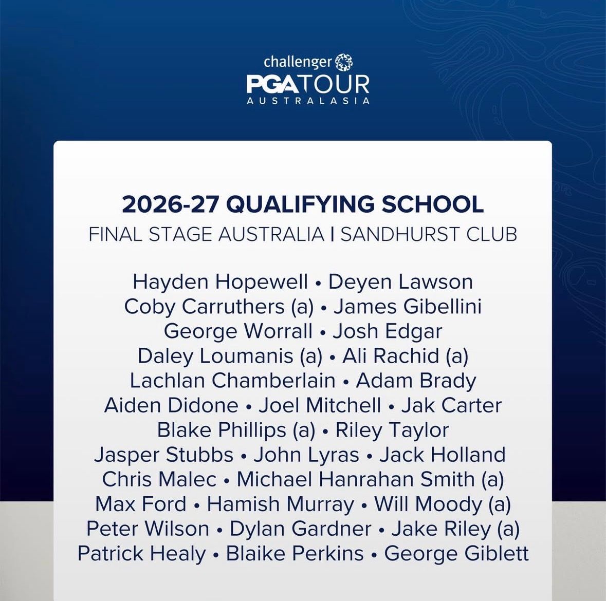 A total of twenty nine players earned their Australasian Tour cards for next season. Hayden Hopewell finished on top of the leaderboard .